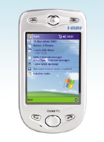 The i-mate Pocket PC looks like a Pocket PC, providing all of the flexibility and functionality of a mobile PC, while at the same time providing phone and internet easily in the same unit. Running Windows Mobile 2003 for Pocket PC and 128MB of memory, you can have all of your mobile needs fulfilled in the palm of your hand.