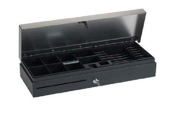 Supplied in a matt black finish with solid metal construction and an extra-strong hinge system. The notes are held vertically it the 5 note compartments and 8 easy scoop coin boxes ensure there is plenty of storage space. The addition of an 18cm wide media slot allows the easy insertion of cheques or credit slips without the need to open the drawer.